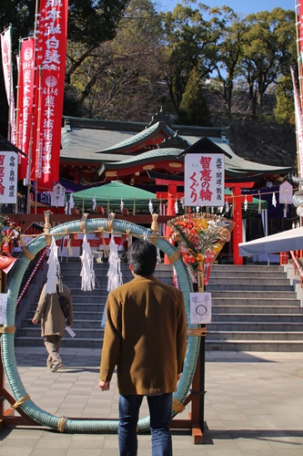 2月はじめの日曜日に行ったら午の日で、「初午大祭」が開催されていました。神社内は深紅の建造物で飾られて賑やかな雰囲気。「智恵の輪ぐり」なるオブジェががありました。もりろんくぐってみたりして。