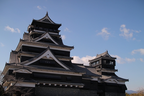 高い石垣の上にはぴかぴかの天守閣がそびえたち、ひろい公園になっています。本丸御殿へと続く地下通路が壮大。