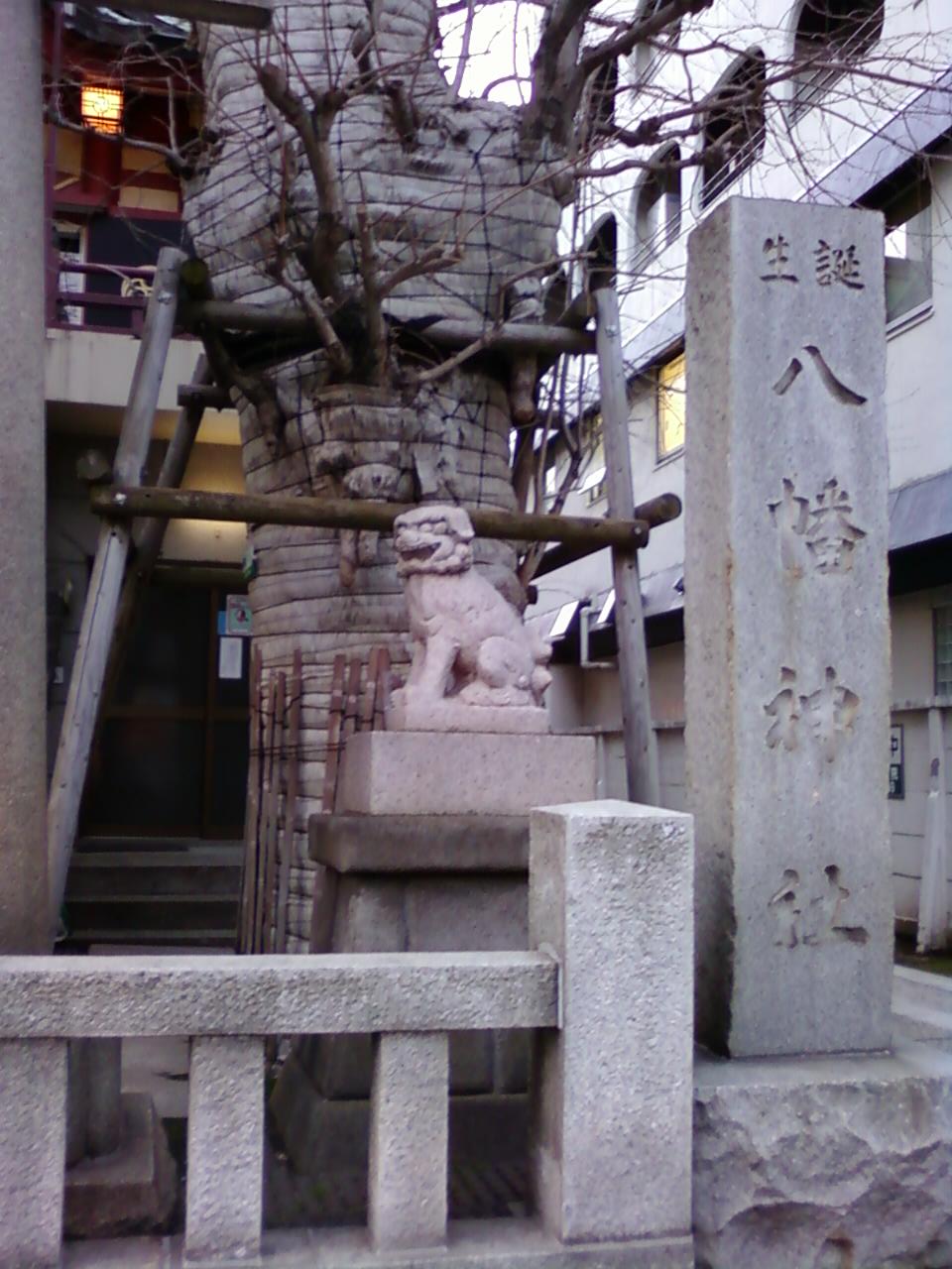 ここの八幡神社は、目黒駅から白金台駅方面に向かう道路沿いにあります。あまり目立たないので通り過ぎてしまいそうになりますが、目黒のさんま祭りの際には中心的神社となるそうです。ここには大銀杏が植わっていて、このような新旧混じる町並みと自然の残っているところが目黒の魅力でもあるかも。