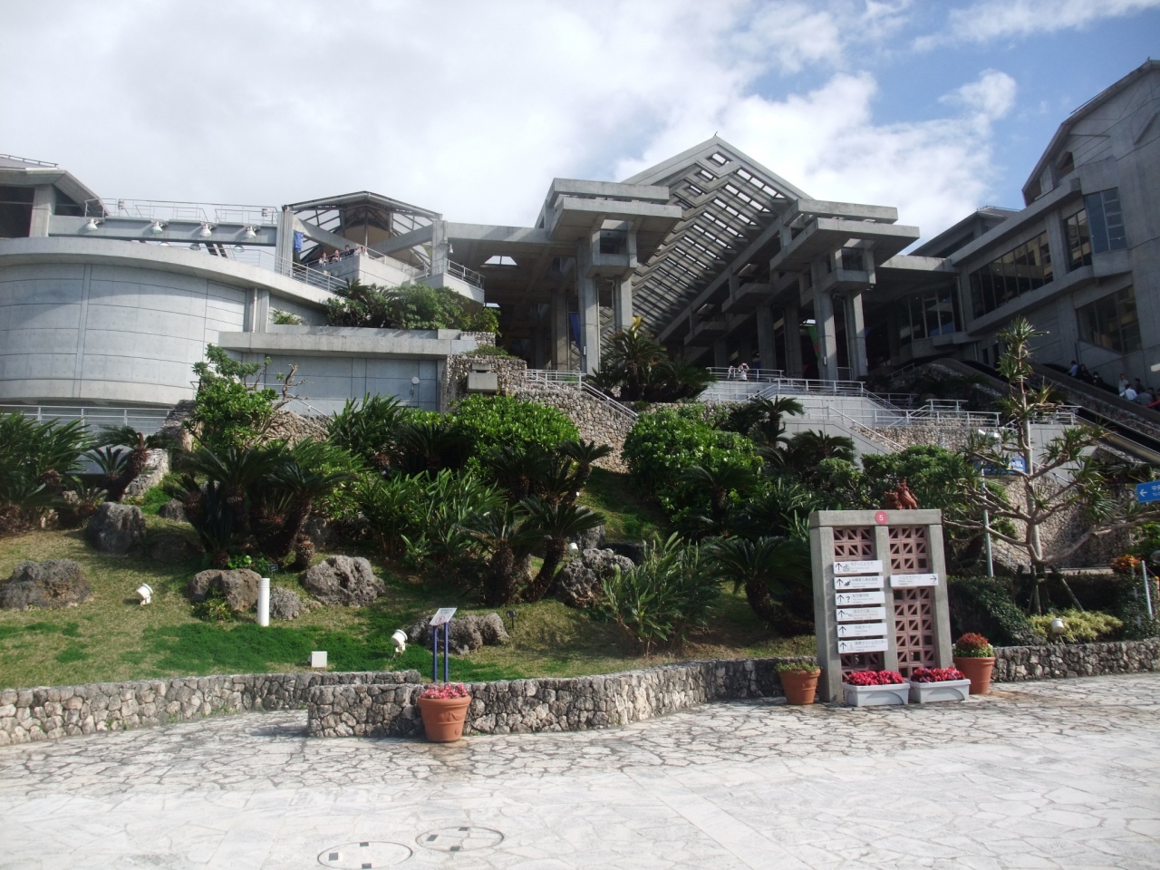 沖縄の本部町の沖縄記念公園(海洋博公園)の中にあるコンクリート4階建のちょっと変わった複雑な建物が「沖縄美ら海水族館」です。私たちは美ら海エンジョイパスを使って入りましたが、大人の入館料は1人1800円です。