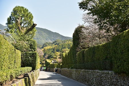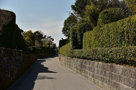 生け垣と庭の美しい武家屋敷の景色が春らしく素敵でした