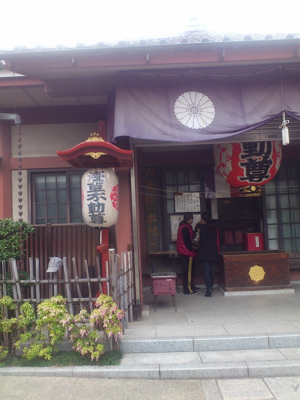 雷門、宝蔵門を通って浅草寺の本殿へ向かう途中の左側、五重塔の近くにあります。なでぼとけと呼ばれる自分の体の悪いところを撫でるとご利益のある不動尊があります。みんなに撫でられるので、ピカピカになっています。そんなに観光客も多くなく、穴場です。