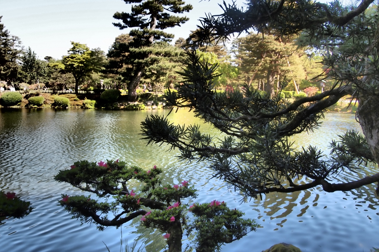 お茶所は園内に数カ所ありますが、こちらは池にまるで浮かんでいるかのような造りで霞ヶ池を目の前に眺めながらお茶を頂く事が出来ます。