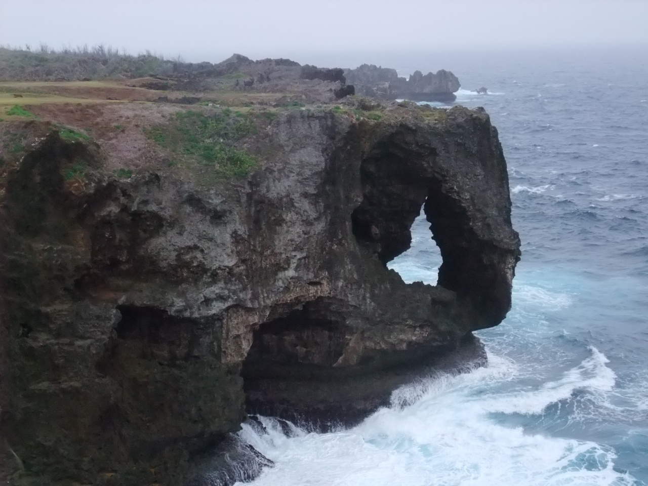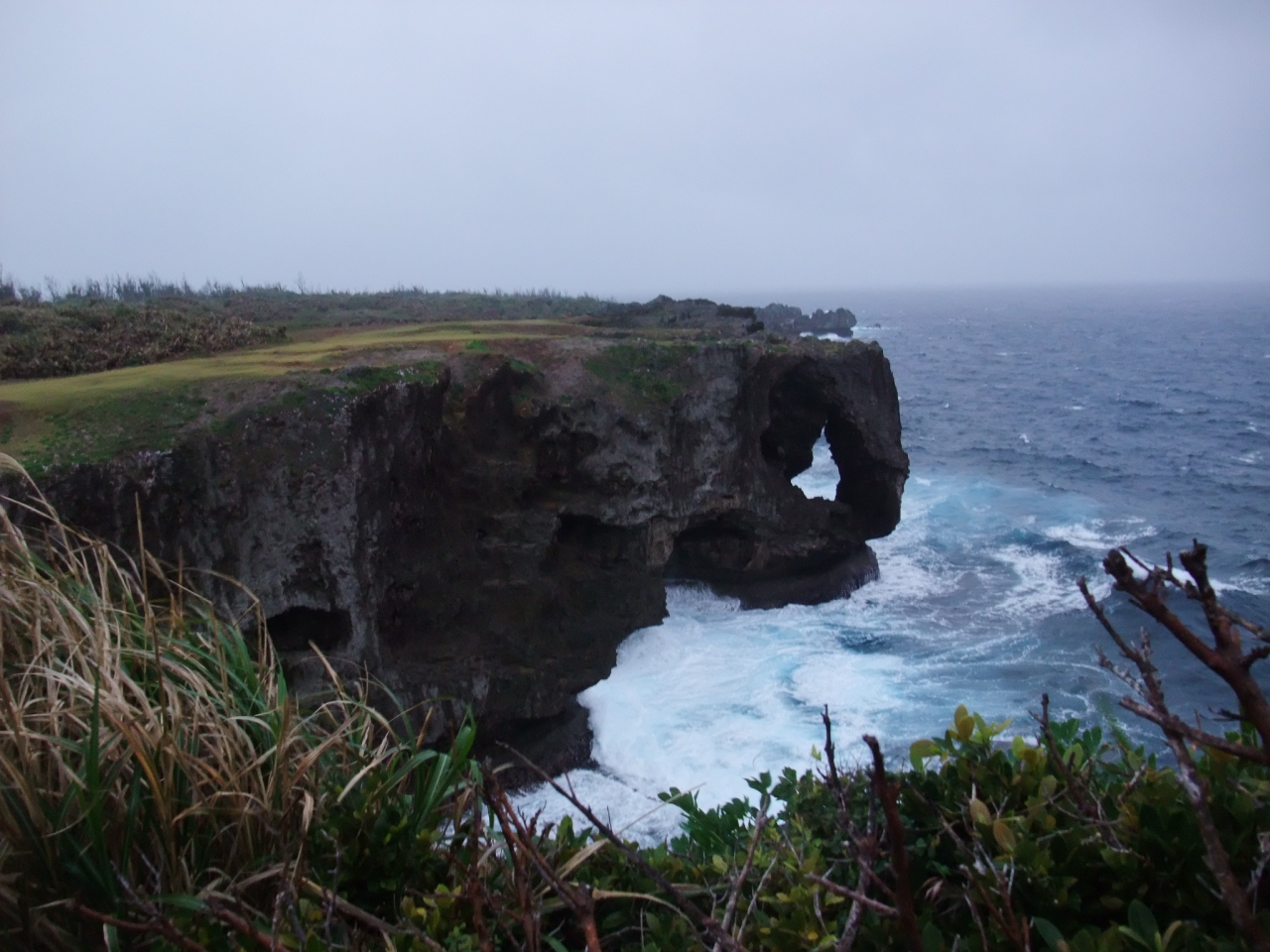 私は万座毛に来るのは2度目ですが、今回は雨と風が激しく、ゆっくり風景を楽しんだり散策することができず、少し残念でした。