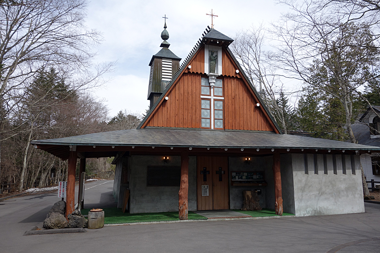 前日に日本聖公会ショー記念礼拝堂、軽井沢高原教会、石の教会などを見て、ここだけ見忘れていました。小諸からの帰り道に再び軽井沢に立ち寄ってみました。広い駐車場(無料)があるので、助かります。