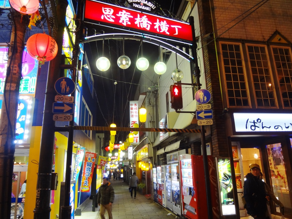 観光で長崎を訪れると、平和公園やグラバー園など昼間に歩くところが中心。夜出かけるにしても中華街で食事ってところでしょうか。そこで夜の長崎を探訪したいという向きには、こちら思案橋でしょう。長崎一の繁華街、浜町を抜けたところに広がる飲み屋街。狭い通りの左右には居酒屋、バーなどのネオンが鈴なりになっています。知らない土地で飲み屋に入るって結構、度胸いりますけどね。客引きも見かけず、印象としては、そんなぼったりくり店はなさそうな気もしました。根拠はないけどね。