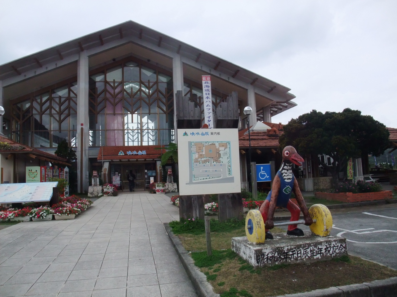 「道の駅ゆいゆい国頭」には北海道日本ハムファイターズの大きな歓迎幕がかかっていました。温かい沖縄では多くのプロ野球のチームがキャンプを行っていますが、ここ国頭村は北海道日本ハムファイターズのキャンプ地になっています。