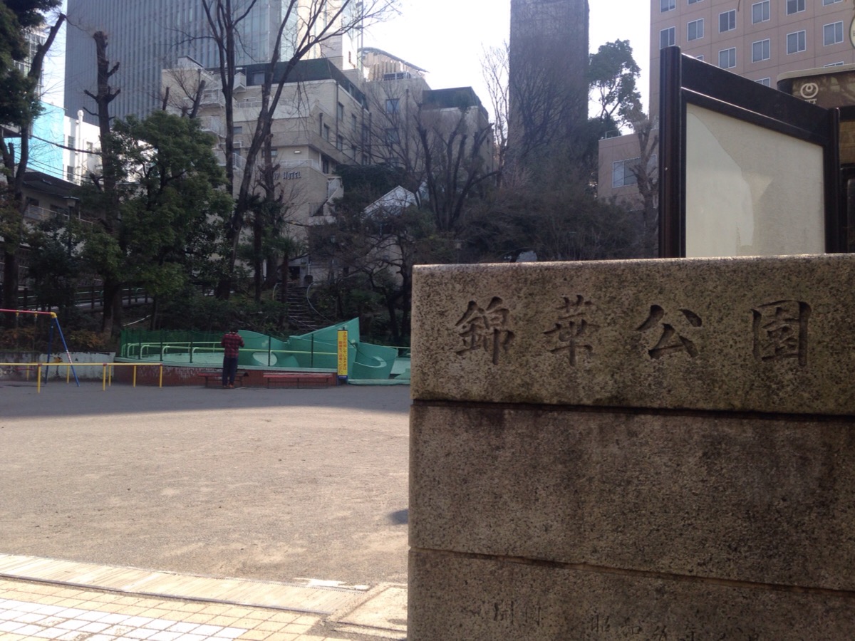 お茶の水駅と神保町駅のちょうど間あたりの明治大学の裏手にある公園がここ「錦華公園」。ここに隣接する小学校はかつて、夏目漱石も通った学校とのこと。そのためか、今のお茶の水小学校(かつての錦華小学校)の脇には夏目漱石の碑も建っていました。この公園も都会の中のオアシスって感じの雰囲気で、この日も天気がよく駿河台散策の際のちょっとした一息スポットとして利用しました。なんでも昔の屋敷の庭園でもあったみたいで。
