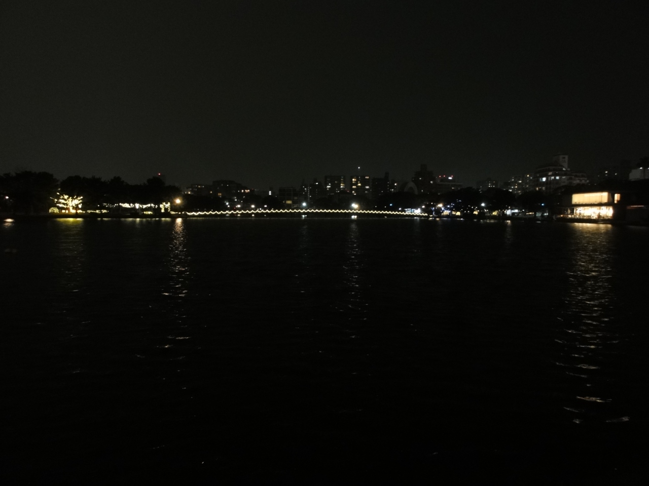 1月中旬に旅行で行きました。イルミネーションの案内を見て夕食後に大濠公園を散策しました。広場から大濠池に行くと、広い湖面のかなたに光るイルミネーションの帯が浮かび上がり、とても幻想的な光景が広がっていました。
