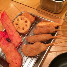 串カツ110円、ホルモン120円、豚バラ130円とどれもお手頃のお値段です。