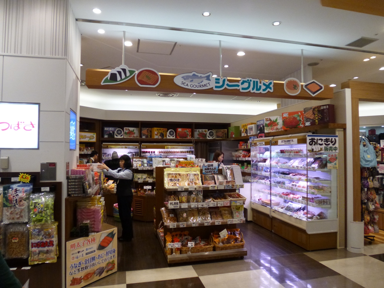 成田空港第2ターミナルビル本館の4階には数多くのショップが並びますが、その一画に「シーグルメ」という海の幸を売るお店があります。海に面した千葉県ならではのお店で、パッケージや乾物に加えて生ものも少しあるようでした。訪問先の国には持ち込めない場合が多いと思うので、注意が必要です。