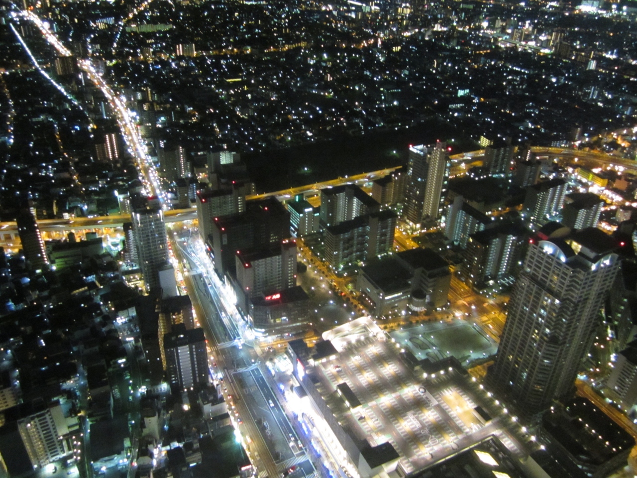 「光の饗宴」大阪のイルミネーションを見にいった時に、高層階からの夜景を楽しむために立ち寄ってきました。高さ300mの展望台からの眺めは時間を忘れて魅入ってしまうほど神秘的で美しい光景です。エレベーターで60階まで一気にあがり展望台・天上回廊・ショップ・天空庭園・カフェレストランなどがある58F-60Fはエスカレーターで自由に移動できるようになってます。その日は60Fから屋上にのぼれる「ハルカス300ヘリポートツアー」(¥500)は強風のため残念ながら中止でしたがハルカス名物の「パインアメソフト」が小さく砕いたアメの風味が口あたりよく美味しかったです。59Fのガラス張りのトイレからの眺めも素敵でした。
