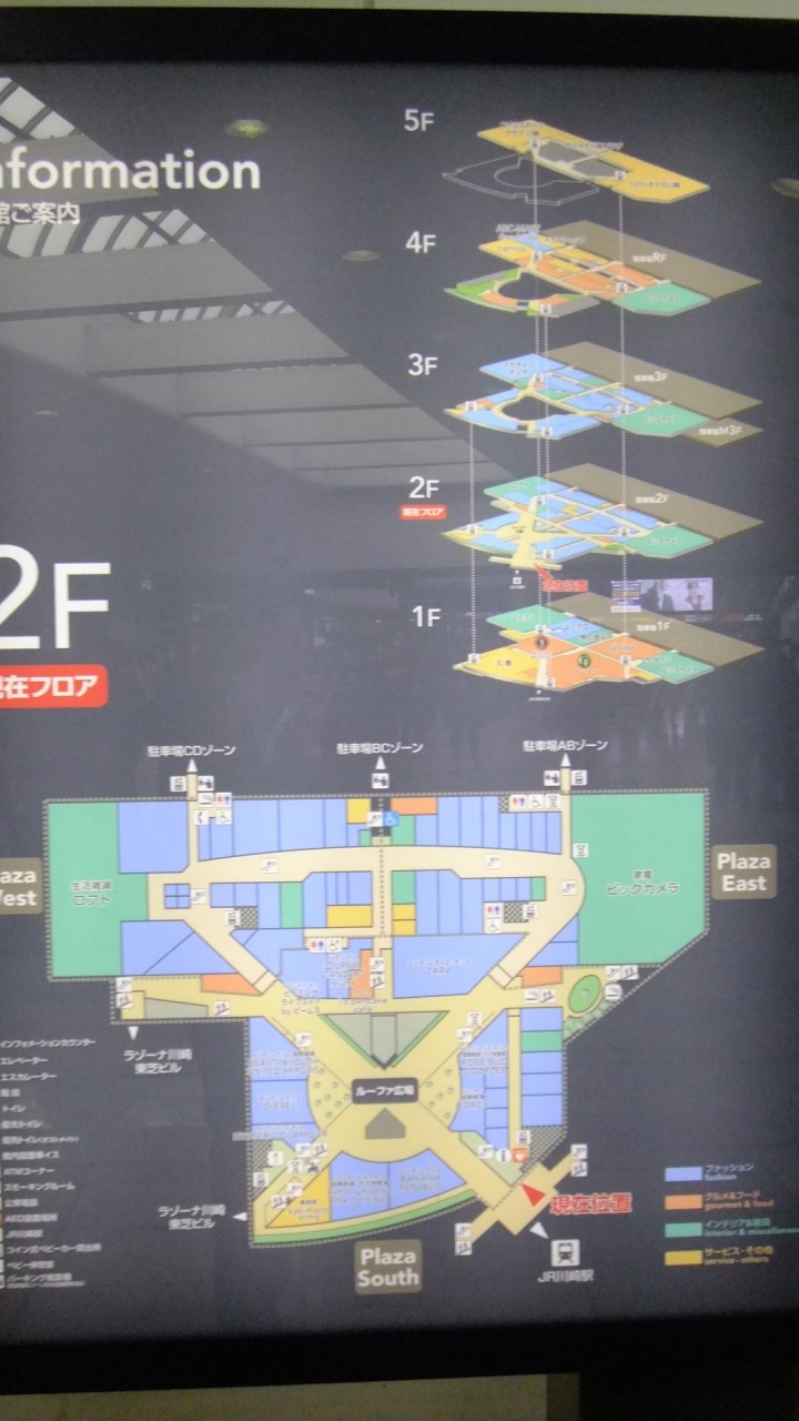 JRの川崎駅から右側に歩くとすぐにこのショッピングゾーンにたどり着きます。大きな広場を中心にしてショップが並んでいます。スペースが結構広いので、移動は結構かかります。店もたくさんあるので、しっかり調べていかないと、なかなかお目当てのお店にたどり着けないかも。