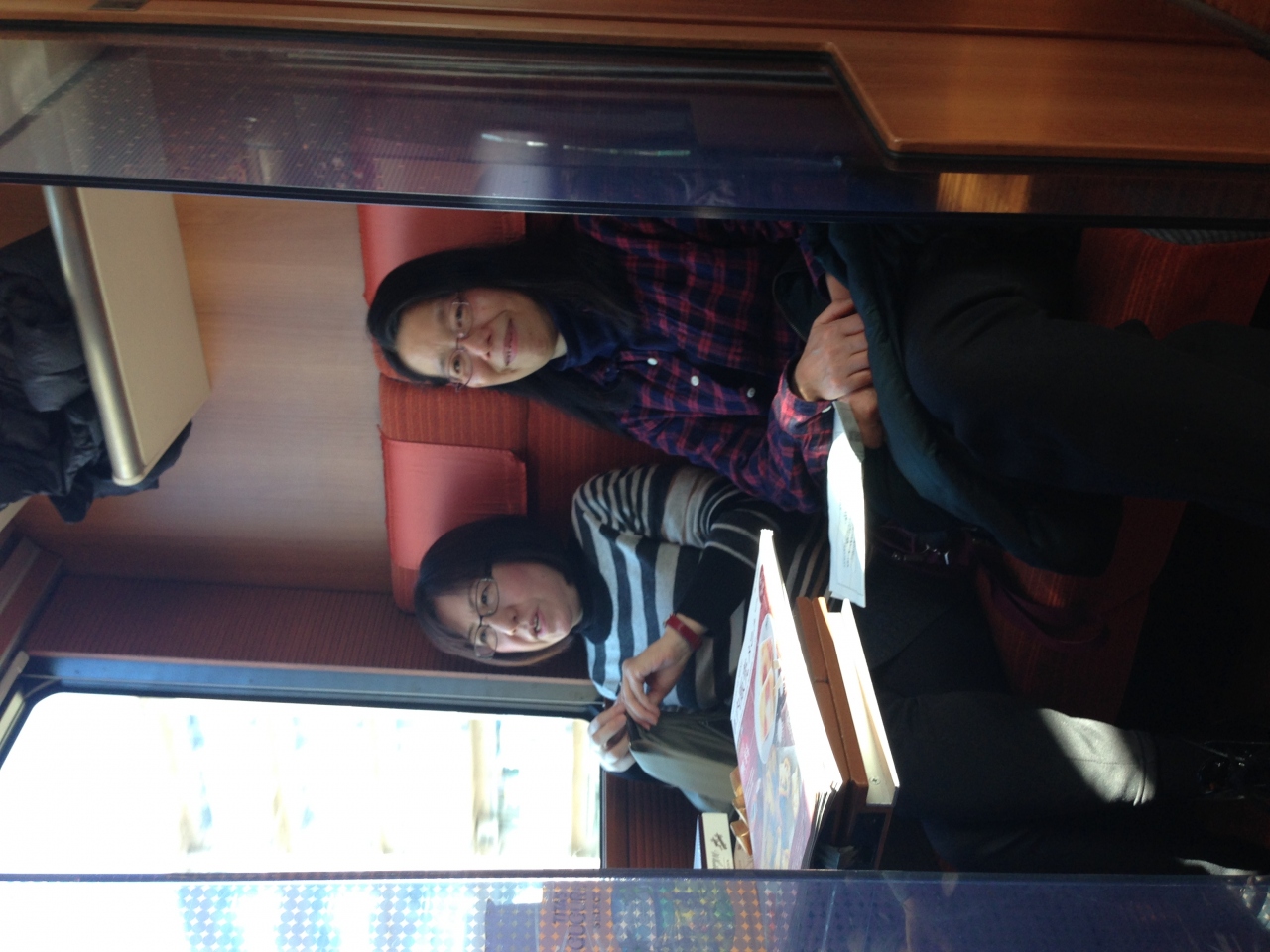 でも、一つの車両に3ボックスしかないので、静かで個室感があります。ドアがないので、秘密の話でも大丈夫なわけではありませんが、席もゆったりしていてくつろげます。