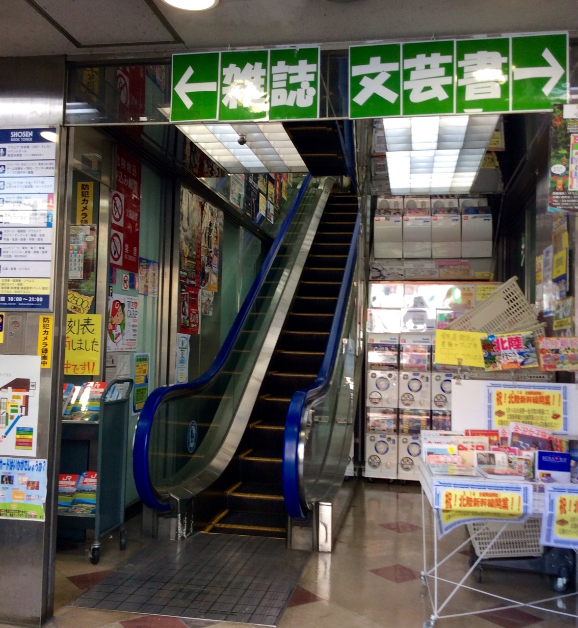 フロアーごとにジャンル別の本が置いてあります。エスカレーターで移動します。