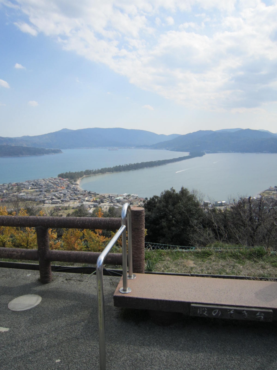 天橋立を上から見下ろせるスポット。こちらは北近畿タンゴ鉄道天橋立駅からは天橋立を通過して?対岸にあるスポットになります。車でない方は天橋立を徒歩もしくは自転車で通過するか、観光船もしくはモーターボートの船に乗って対岸に行くかしていくことになります。上まではリフトもしくはケーブルカー(同料金)で上がりますが、おすすめはリフトです。上り下りで違うものを選択できるので人気なのは上がるときにケーブル・降りるときはリフトという感じでした。土曜日に伺いましたがのぼりおりで並びました。上にあがれば有名な股のぞきスポットが何か所かあり、天橋立を見下ろすことができます。観光客が多いのは間違いないと思います