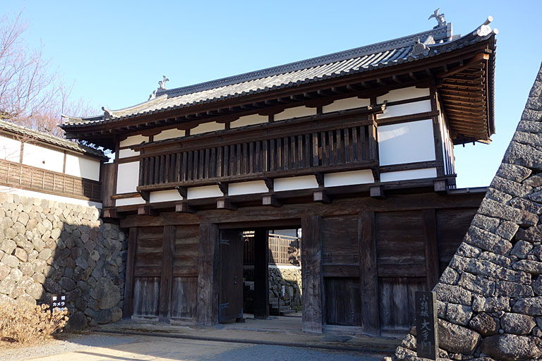 小諸城の遺構として現存している大きな門ですが、現在は鉄道によって小諸城趾と分断されており、市街地にあります。近年に解体修理が行われていることもあって、保存状態は非常に良いです。