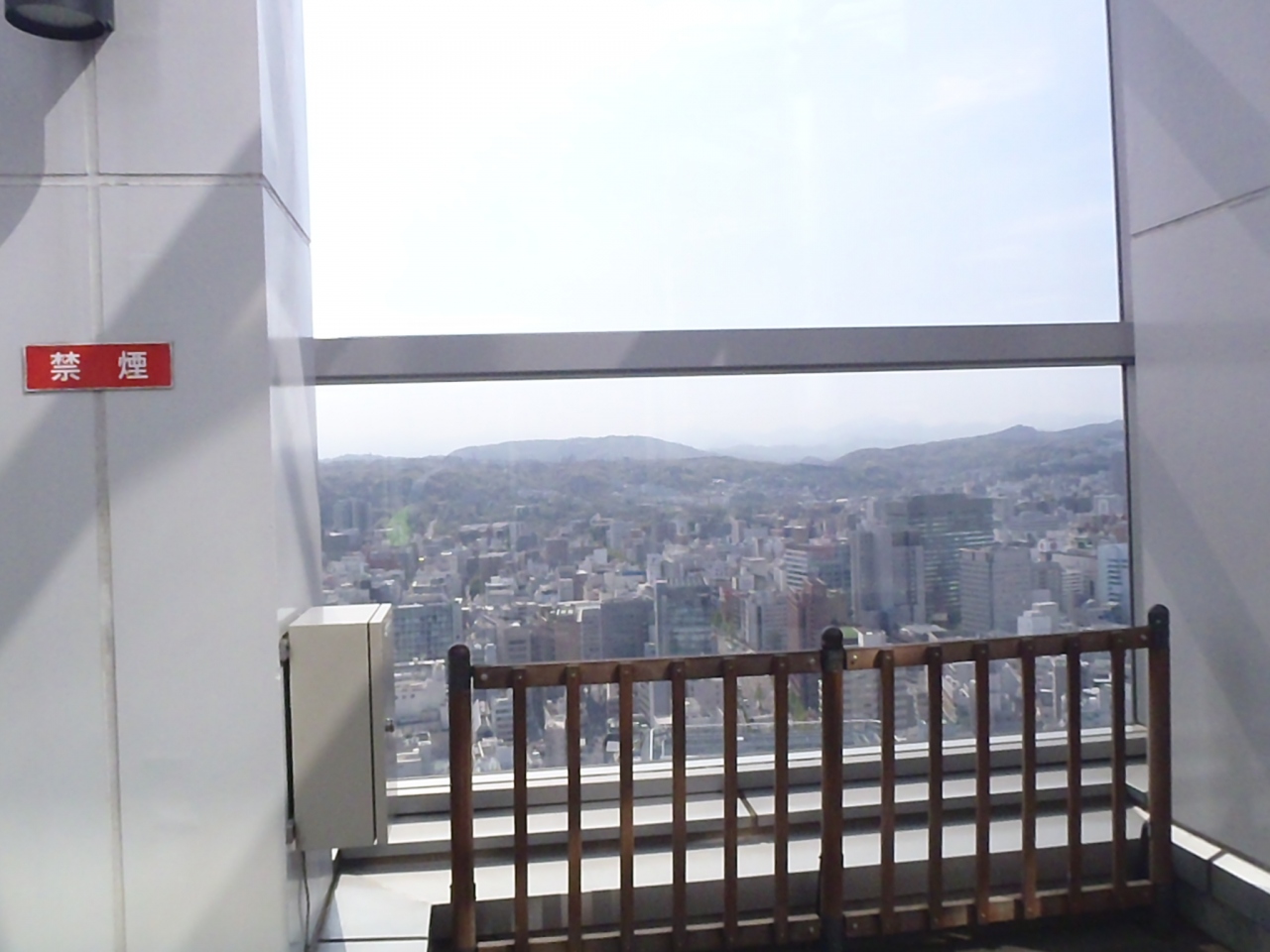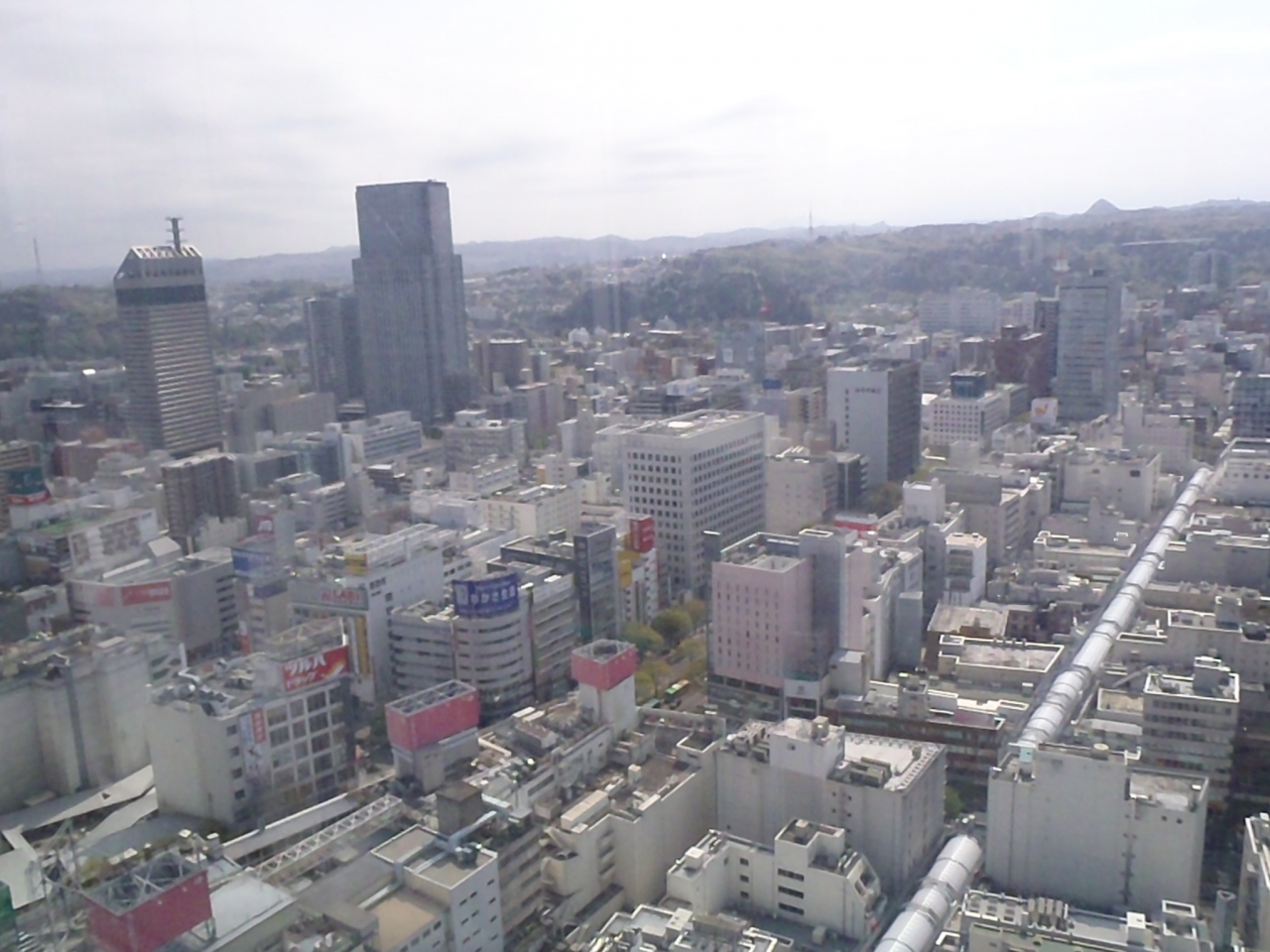 仙台駅西口をフェデストリアンデッキを北側に三角のトンガリ屋根ののっぽビル、グルメとファッション、オフィスの複合ビルの30階にある展望スペースです。