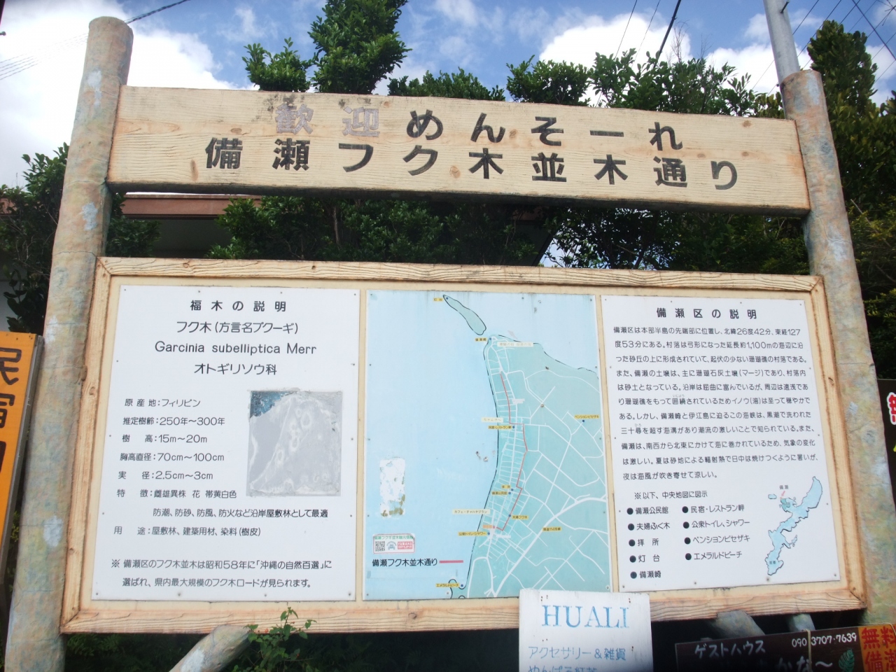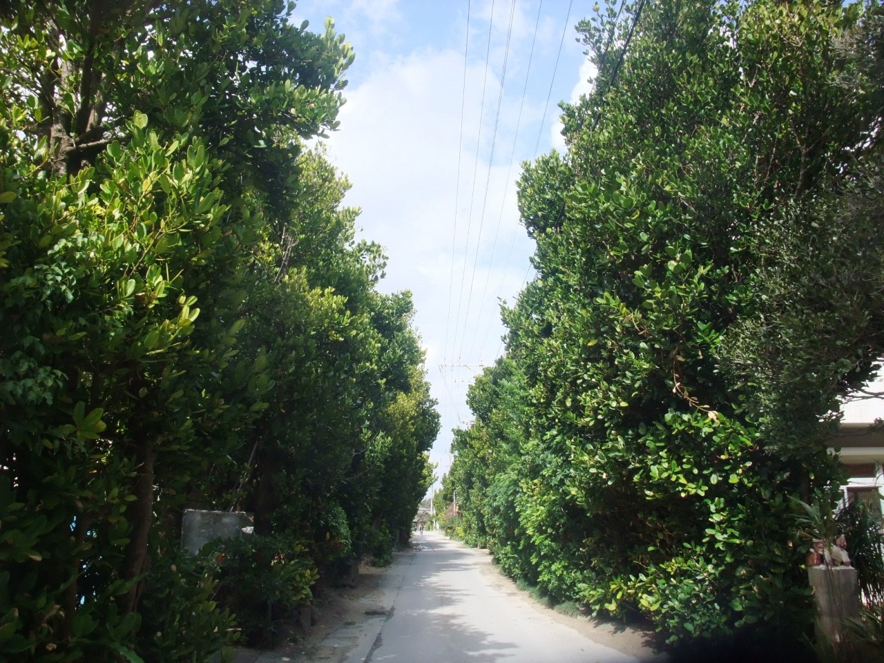 海洋博公園近くの備瀬崎には見事な備瀬福木並木道があります。防風林として植えられた数万本のフクギが大きく育ち、集落の通りが福木並木となっており、緑のトンネルが出来ています。中には樹齢300年ものフクギがあります。