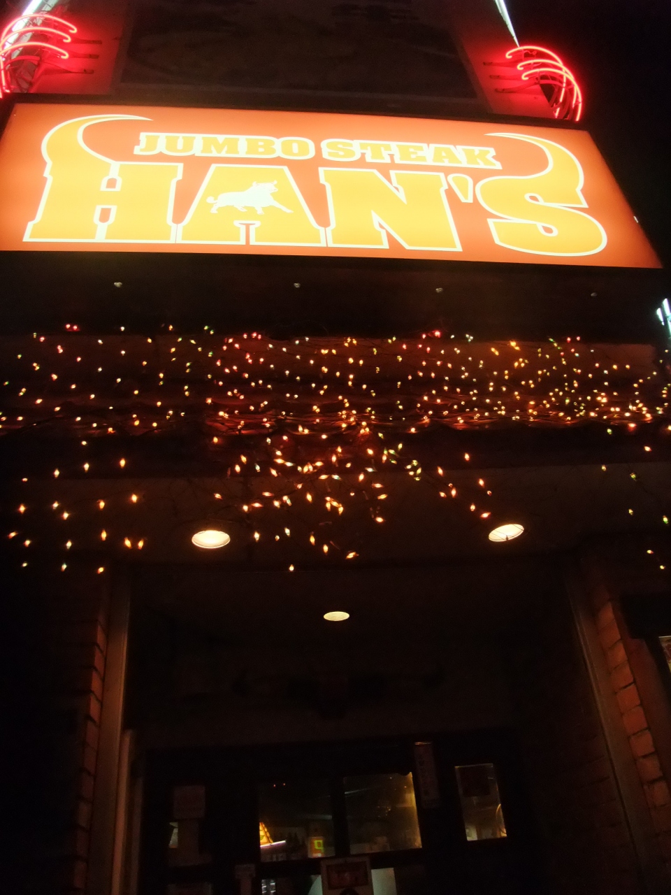 私たちの泊まった「ホテル国際プラザ」の宿泊には、「ジャンボステーキハンズ」のお食事券がついていました。そこで国際通りの散策がてら、ホテルから歩いてぶらぶらと食事に出かけました。