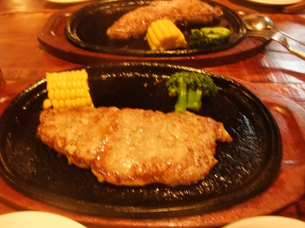 「ジャンボステーキハンズ」では石垣牛もあるようですが、私たちの御食事券は、ジャンボチキンステーキセット450gか、ハンバーグステーキセット300gか、ハーフステーキ225gの選べるのもでした。そこで私はハーフステーキセットを選びました。美味しかったです。
