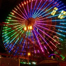 横浜の夜景のシンボルでもある、観覧車「コスモクロック21」も素敵です。
