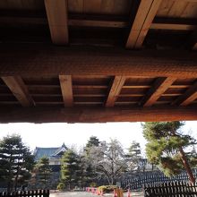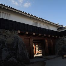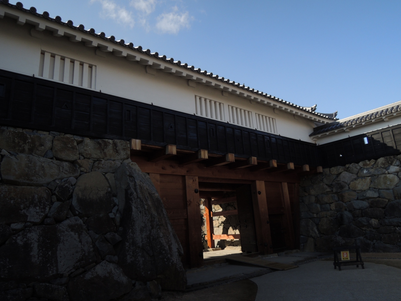 敵を枡内に入ってきたところを四方八方から鉄砲や弓で狙い撃ちするところで防御上、大きなお城にはほとんどある枡形虎口は相手方にとってはかなり戦力を失うところですが、ここを突破しなければ場内に入ることができないので数を持って突入する。この松本城の太鼓門は大きな城だけにその扉や柱もかなり立派なもので、よく復元してあります。