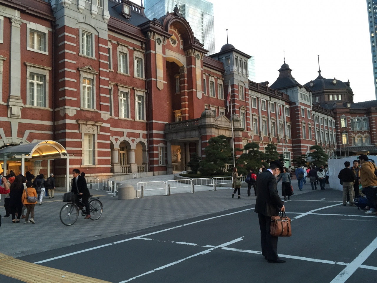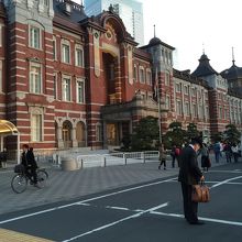 東京駅中の利用はあるのですが初めて外へ出て駅舎を眺めることになりました。ビル群の中で赤い駅舎が美しく目をひきます。全体を見通すには正面新丸ビルのレストラン階が良いと思います。ドーム天井の彫刻も是非見上げて見てくださいね。