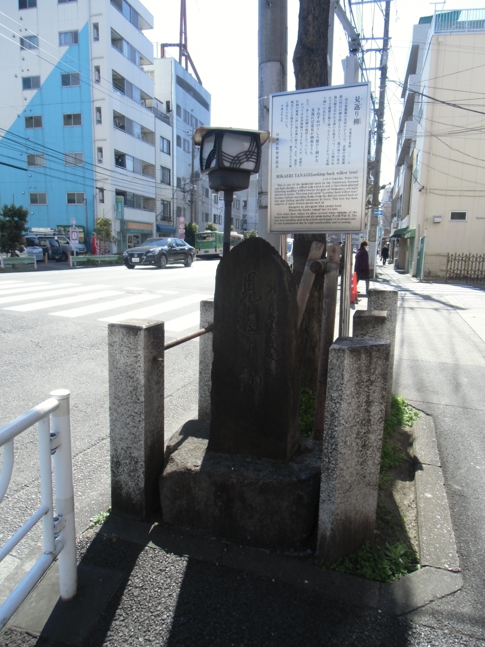 新吉原遊郭の大門があった辺りにあります。吉原遊郭で遊んだ客が大門を出て、後ろ髪を引かれるように柳の辺りで振り返ったので「見返り柳」と呼ばれたそうです。