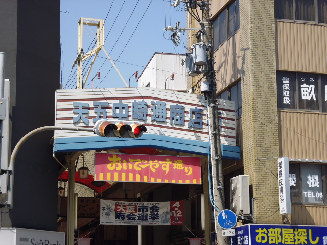 JR天満駅から少し歩き、地下鉄の中崎町方面に向かう通りが天五中崎通商店街です、商店街には食べ物屋さんが多く、大阪らしいおいしくて安い店が軒を連ねています。
