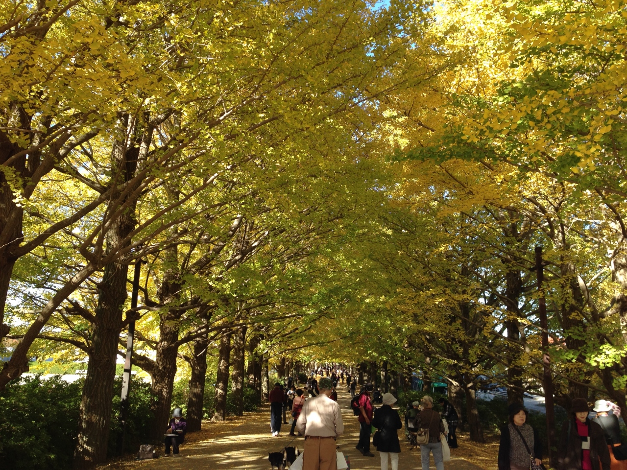 入ってすぐ左に行くとイチョウ並木が黄色く染まっていました。