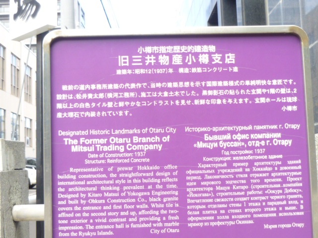 三井物産,さすがですね。日本の黎明期には小樽に支店を持っていたとは。儲かるところに必ずいるのが商社ですからね。その商社の歴史,三井物産の歴史を感じます。小樽はこのような遺産を残しているところが,いいですよね。