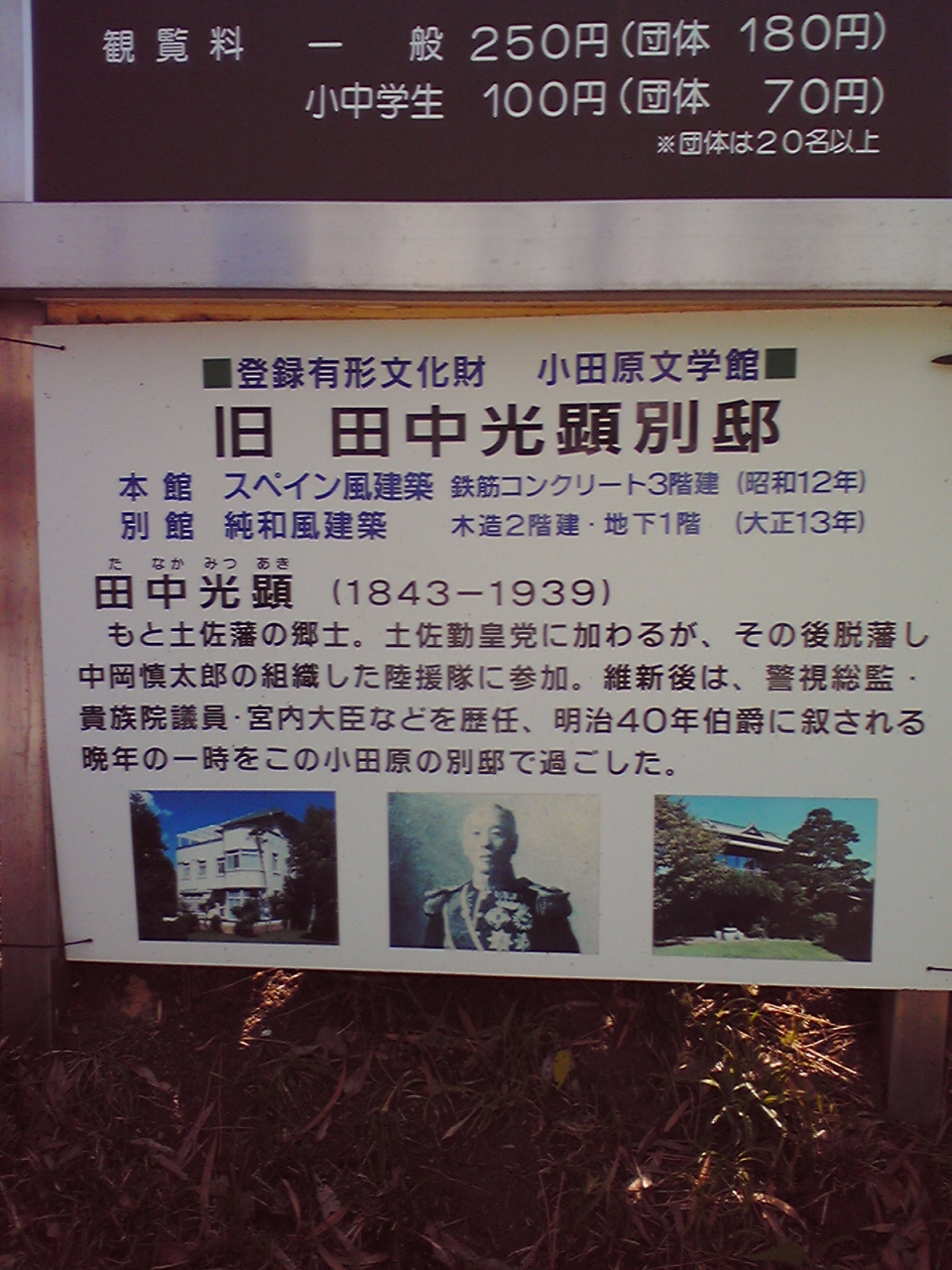 地元、小田原出身の俳人藤田湘子の没後10周年を記念して特別展(H27.3.21〜5.10)が開催されていました。西海土小路の桜並木を愛でるつもりもあって、一年ぶりにこの文学館を訪れてみました。この建物は昭和12年竣工、田中光顕伯爵死没の2年前だそうです。今日、3月30日はぽかぽか陽気、庭の桜や西海土小路の桜も見ごろを迎えていました。