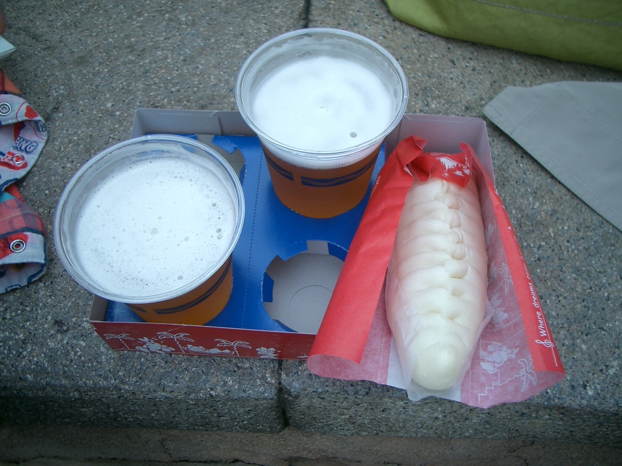 ディズニーシー、プロメテウス火山の麓にあるギョウザドッグとチュロスの店です。ギョウザドッグはワゴン販売が有名でいつも行列ができています。でも、リフレスコスではほとんど行列ができていないので、それほど待たなくてもギョウザドッグがゲットできますよ。店には一応屋根のある座席も少ないけどあります。アルコール(ビール)も売っています。私はギョウザドッグとビールをテイクアウトして海を見ながらベンチで食べるのが好きです。