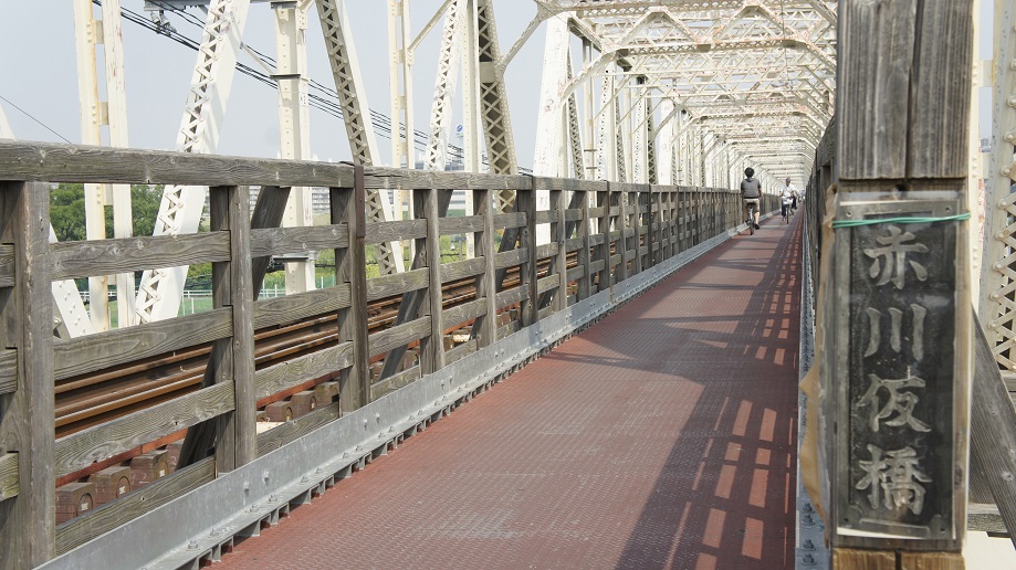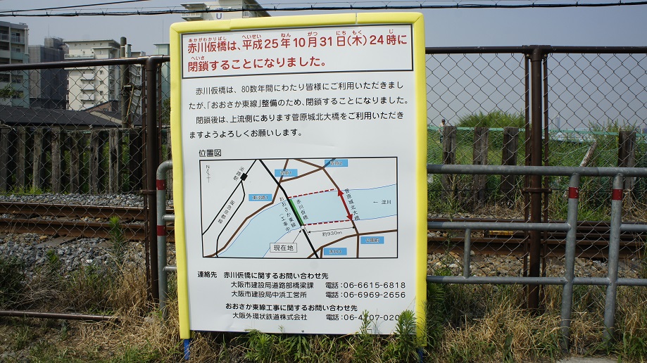 一部木製の人道橋として利用してきた。以来80年になると言うが、城東貨物線が大阪ひがし線となり客車を走らせているが、2018年には北梅田と放出間の旅客運送開業のため、赤川鉄橋が複線利用となるため人道橋の廃止が決まった。