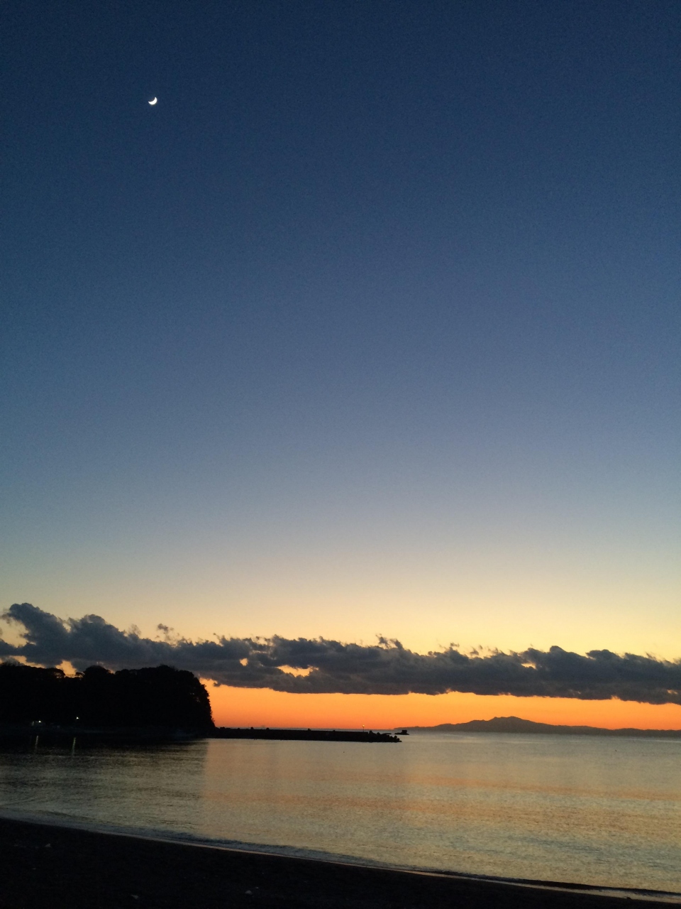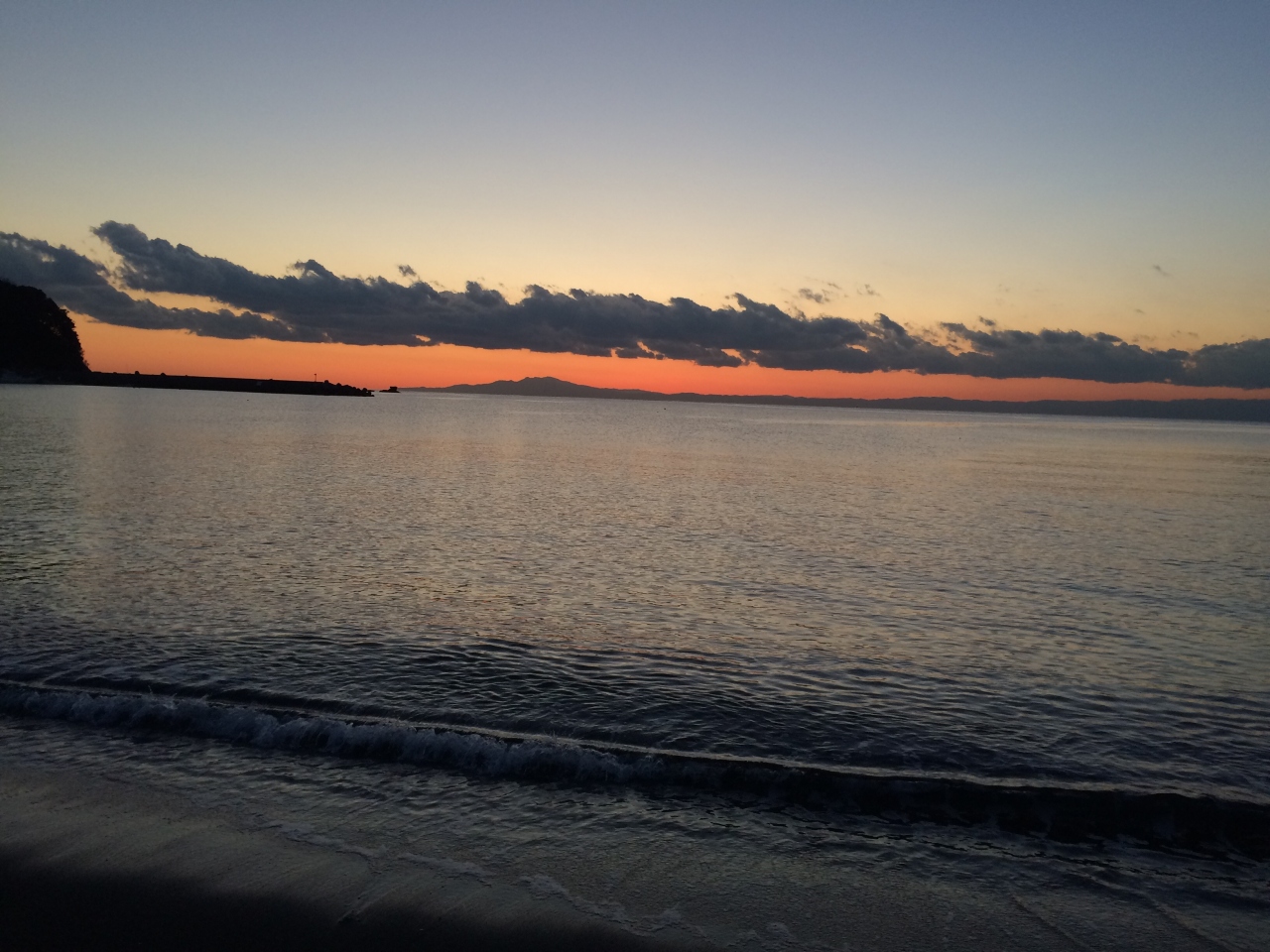 三崎口から歩いて夕陽を、静かな三戸海岸