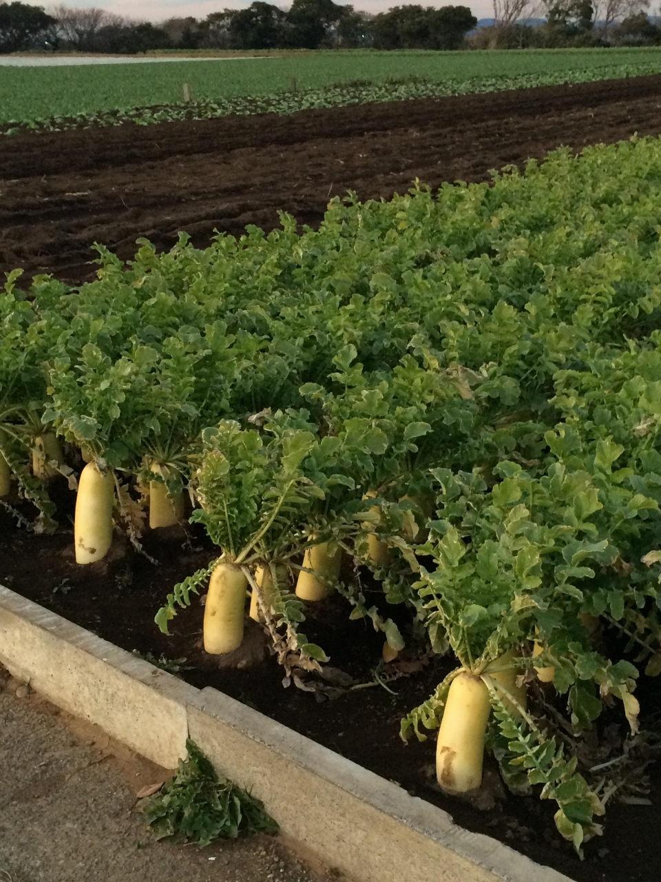 広大な三浦大根の畑、キャベツ畑の中をテクテク歩き、丘を下りぶつかるT字を左に曲りしばし歩くと海岸にでます。