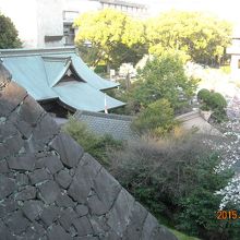 本丸石垣の下、多数の神様と祠が一杯参拝者も一杯。商売上手っていうのかな? 清正公が城の守護神として祀ったもの、何故か庶民の生活守護神となり“白髭さん”と愛称されている。城内の神社って江戸時代の町人は参拝できたのでしょうか?