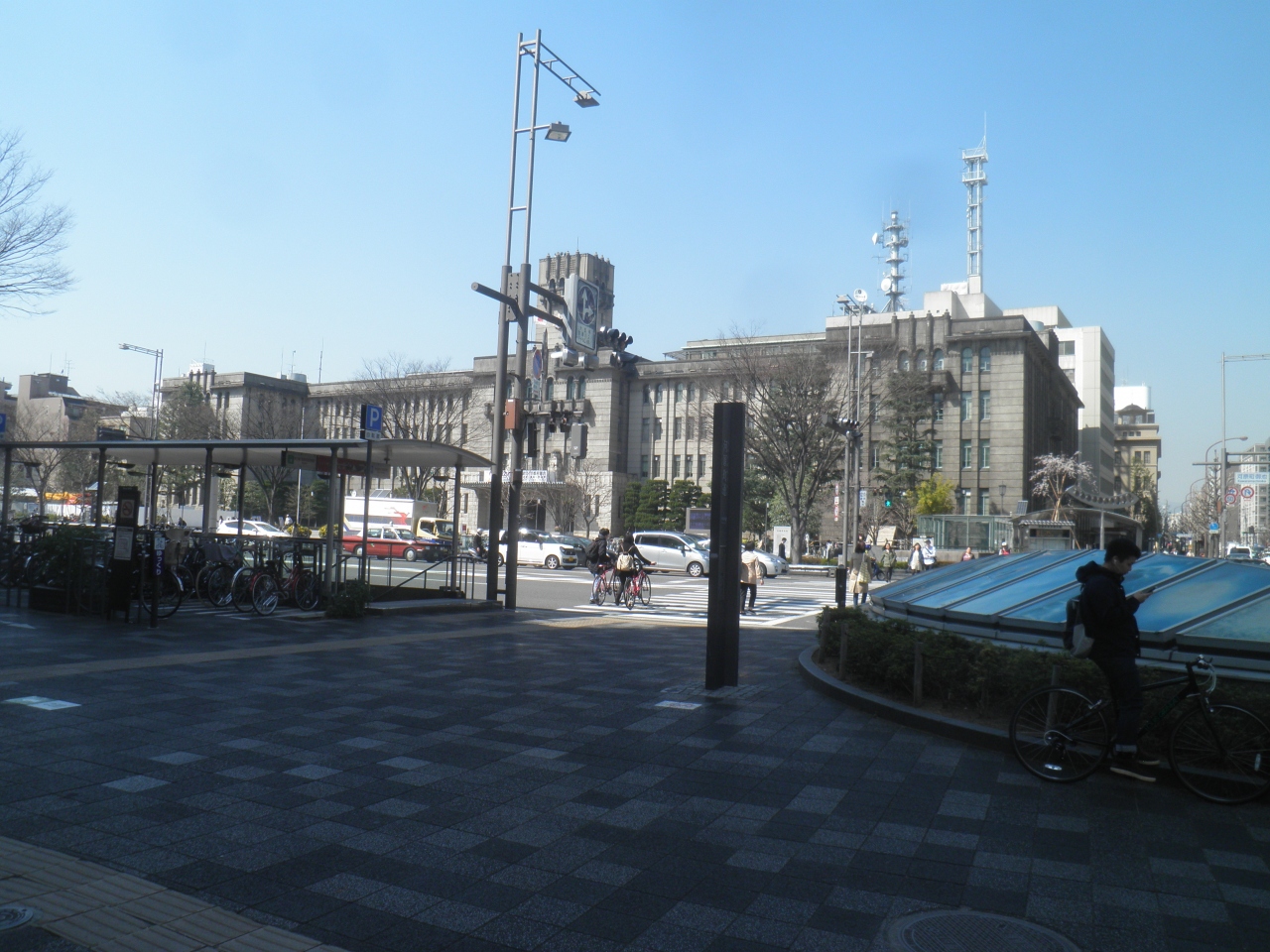 京都市営地下鉄の京都市役所前でおりて、エスカレーターを上がるとすぐそこに京都市役所が道路の向かい側にあります。外観は大変がっしりして立派ですが、建物の内側は古い感じがして、お役所の感じです。 向かい側のブロックには、有名な本能寺があります。