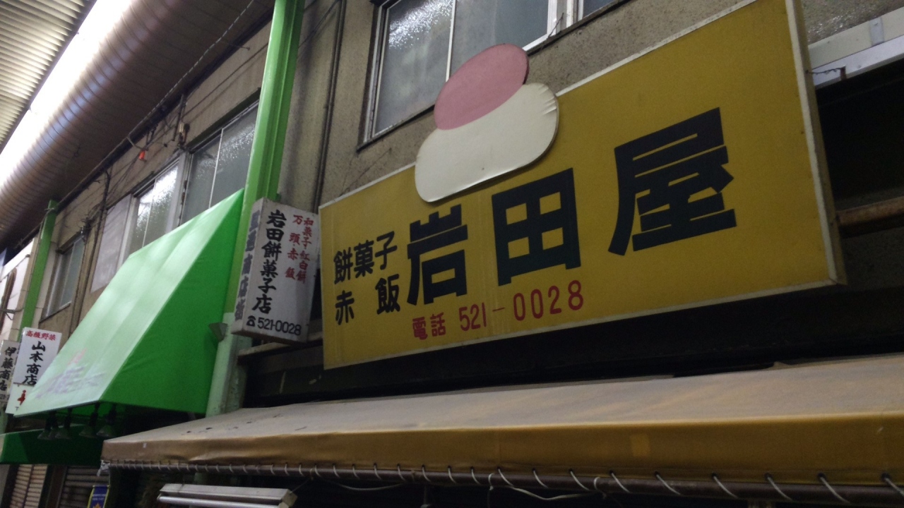 北九州の台所・旦過市場(たんがいちば)の中ほどにある岩田屋さん。昔ながらの手法のまま、丁寧に餅菓子を作られています。素材にもこだわって作っておられ、十勝の小豆を使って作られる塩あんもちは絶品と評判です。そのほか、ようかんや大福、もちあられなどもあります。旦過市場に訪れる折には是非利用したい店です。