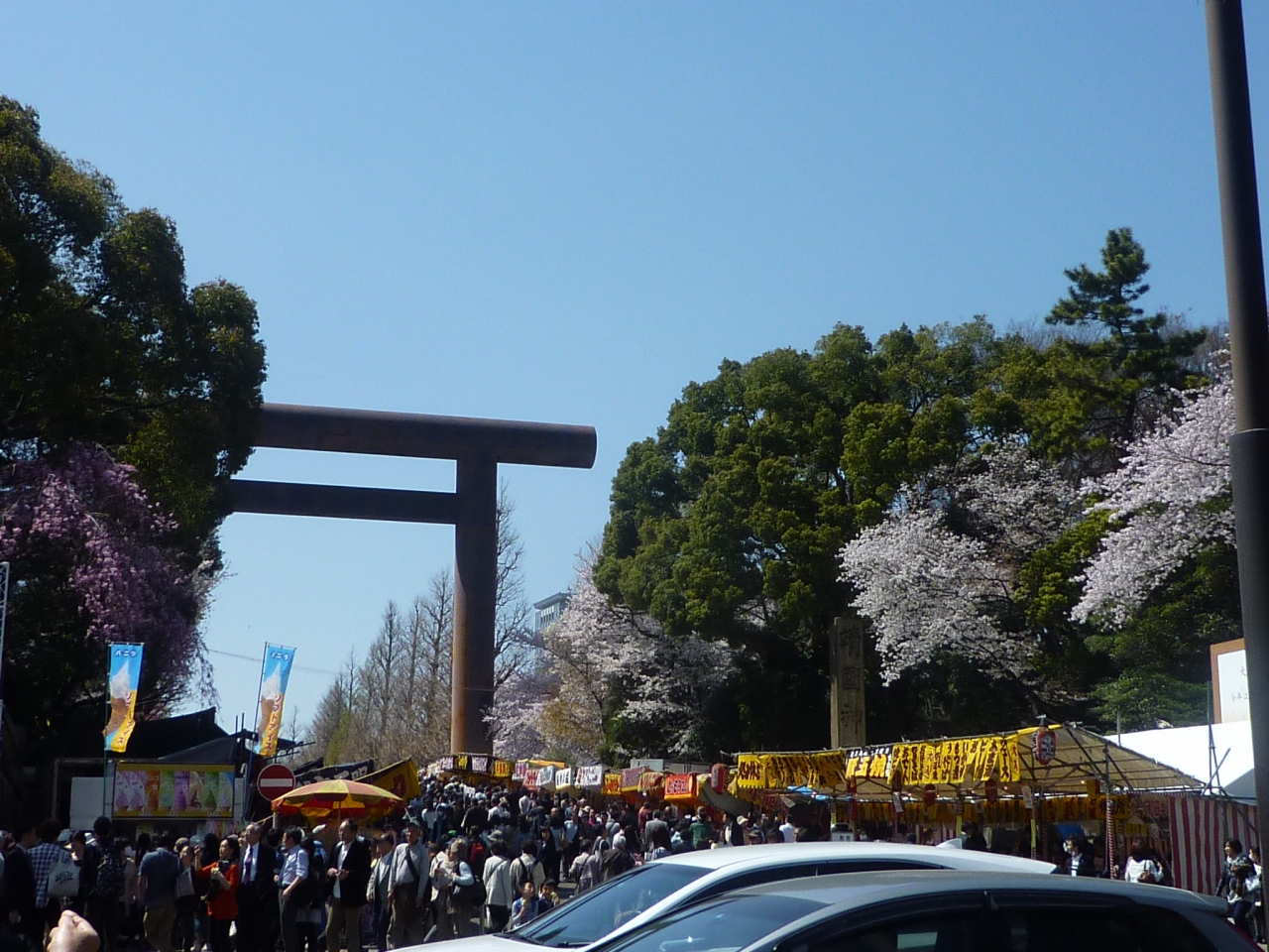 桜が満開の時期に行ってみました。平日でもものすごい人出で、しかも参道の両側にびっしり出店が建ち並ぶので、花より団子派の人も十分満足できると思います。説明するまでもなく深い歴史のある場所ですので、気持ちが引き締まるような空気も感じられます。