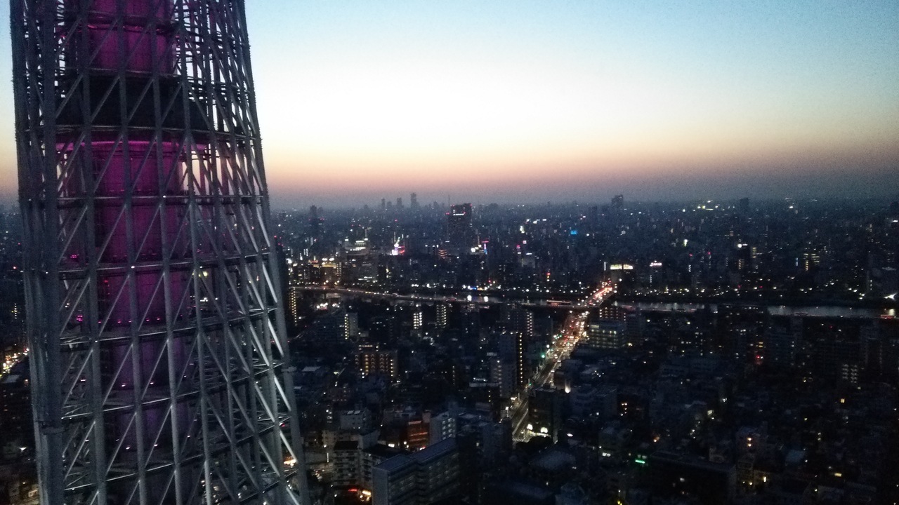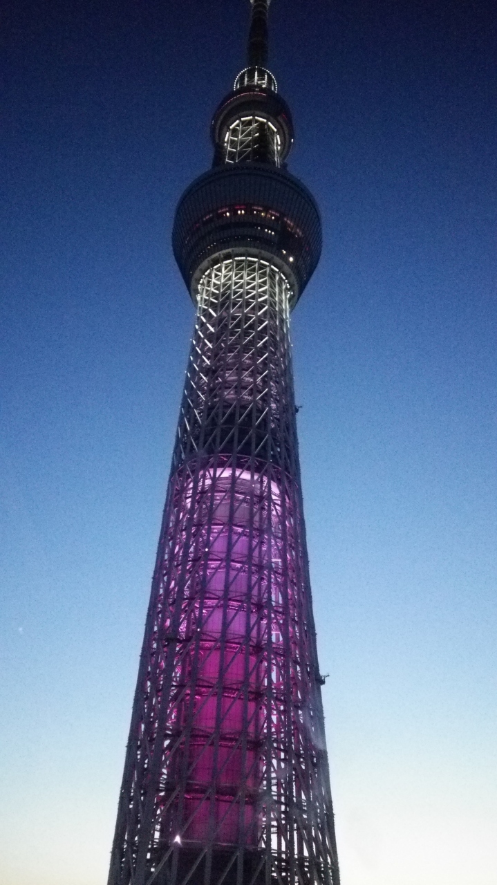 特に夕暮れ時のライトアップされたスカイツリーと空のグラデーションが美しかったです。