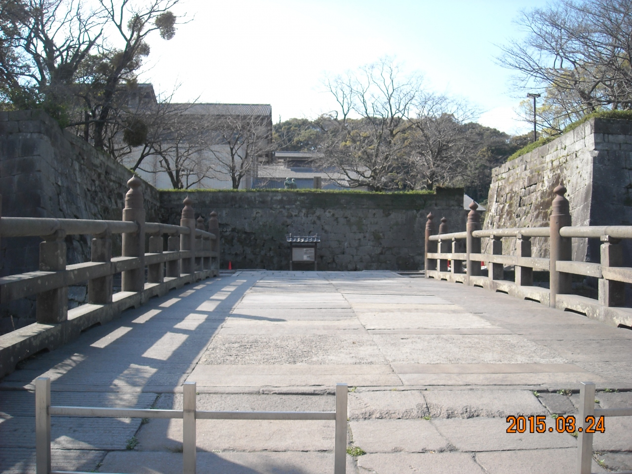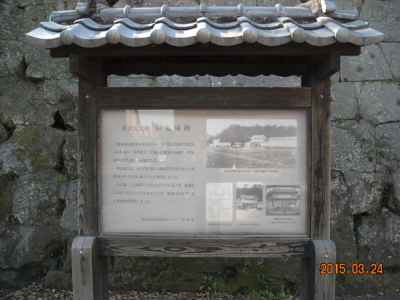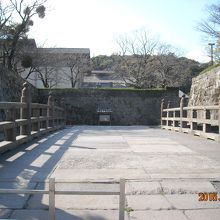 薩摩77万石? 正門付近に掘りがあるのみ、石垣は立派なのがあるものの櫓、天守閣など当初よりなかったという。背後の城山に逃げ込むにせよ城という形のものではない。薩摩は江戸期独自の鎖国体制をひき国境警備に出城・砦に重点を置いたためだろう、甲斐武田家とに似ている。