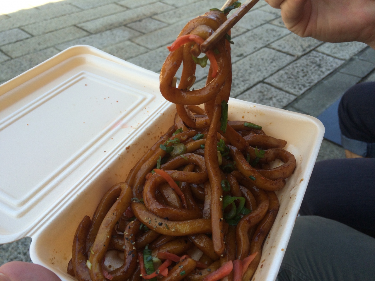 伊勢醤油をかけて、熱々の鉄板の上で焼き上げてくれる伊勢焼きうどんは、伊勢B級グルメの中でもコストパフォーマンスが最高。一皿350円ほどで、小腹が空いた時にぴったり。
