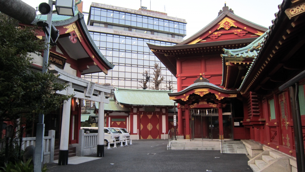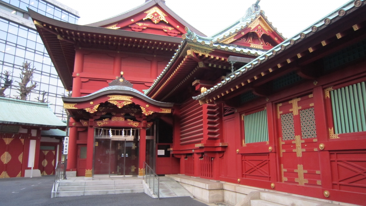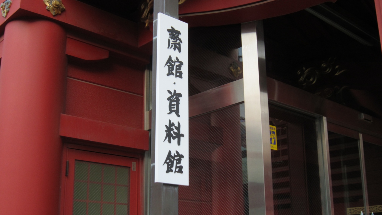 御社殿の左脇にある朱色の資料館。神田明神と神田祭の歴史や江戸東京文化に関する絵巻、古文書、浮世絵などを多く所蔵・展示しています。本殿と隣り合わせなので、本殿の続きかと思っていましたが、齋館・資料館の看板があることで気づきました。