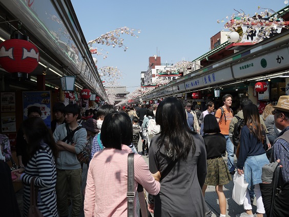 ひよっとしてココは中国? と思うほど中国からの観光客でいっぱいでした。歩いていて聞こえて来る言葉は中国語ばかり、浅草寺の厳かなイメージがちよっと変わったかな。仲見世通りの売り子も中国・韓国語をしゃべってる、何かやだな~