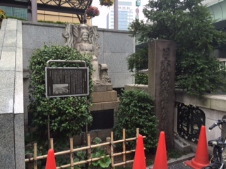 豊洲への移転が計画されている築地ですが、魚河岸は築地の前は日本橋にありました。日本橋に老舗の魚屋が多いのはその名残になります。そして、江戸時代に生まれた魚河岸の記念碑がこちら。関東大震災まで東京の台所としての役割を果たしていました。