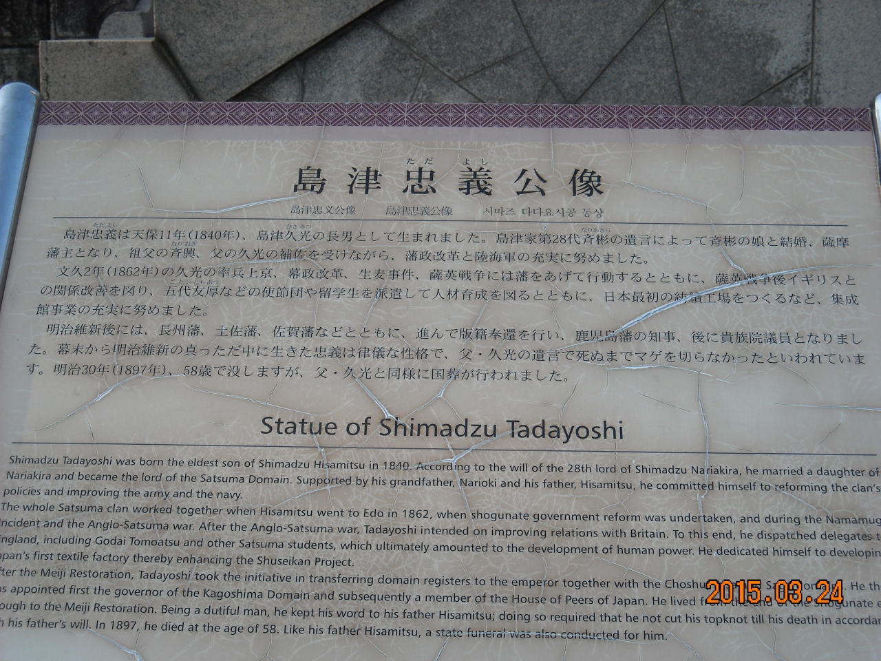 島津成彬・久光公はわかるが忠義公は知りませんでした。幕末・明治は久光・忠義父子で仲良くやっていたのでしょう。特に久光公は現天皇家とも繋がりがあり、平成天皇の妹も島津家に嫁しています。成彬公時代にも2名徳川将軍夫人になっているという信じがたい家系をお持ちのようです