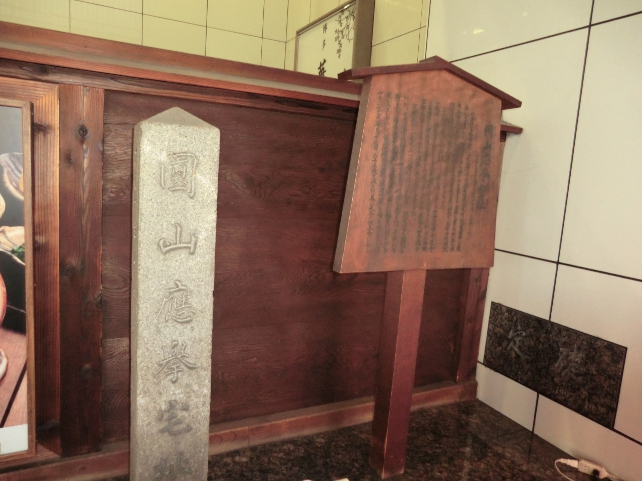 河原町と烏丸の中ほど、四条通りの南側に石碑と説明板が建っています。歩道から少し引っ込んだところにありますが、比較的見つけやすいと思います。応挙は写生を徹底していますが、個人的には、かわいらしい犬の絵が一番印象的です。
