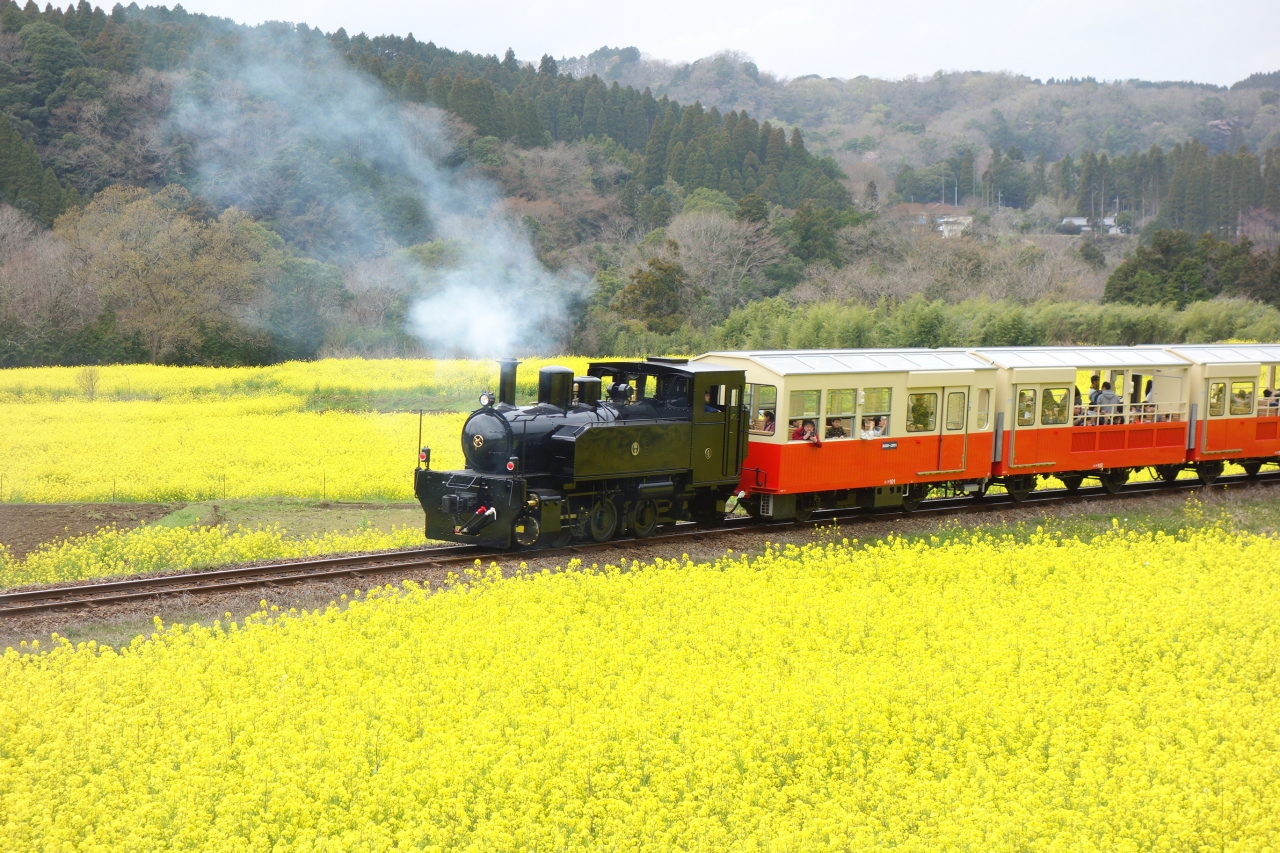 懐かしい駅舎には桜や菜の花が咲き時間が止まったような風景が残る小湊鉄道。春になるとその風景を撮影するカメラマンが多く見られます。一日フリー切符は1800円ですが、運転の本数が1時間に一本しかないので計画して乗車されると良いでしょう。いすみ鉄道にも乗り継ぎができます。